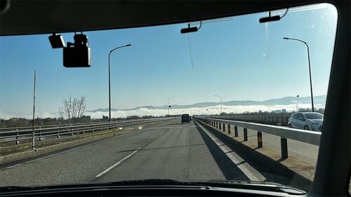 朝起きたら外は霧。 今日は朝トレさすがにおやすみだ。たっぷりと寝た!もう1ヶ月以上眠剤ストップしている。母送迎。帰りに東山方面を見ると、、まだ霧の中という感じだ。そてにしても見事な晴天。迎えに行く。胸が痛いという。。帰りスシロー。母は14カン…